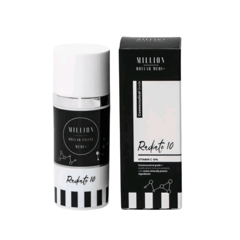 Million Dollar Medi+ Radiate10 is an advanced daily serum that brings a multitude of benefits to the skin. Infused with the power of stabilised L-ascorbic acid, a highly potent form of vitamin C, this serum offers exceptional antioxidant protection to combat the signs of aging caused by environmental aggressors.